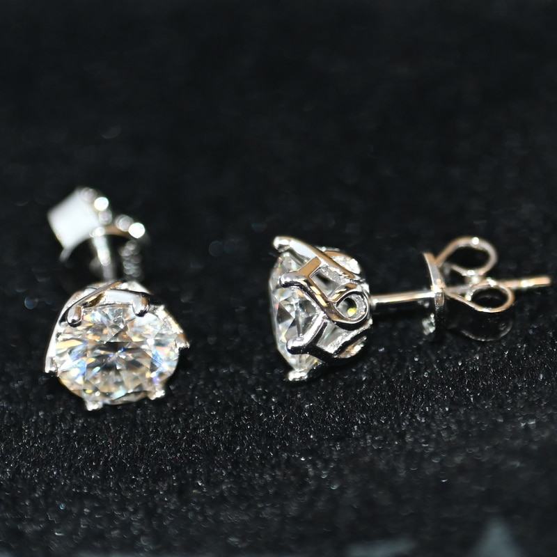 עגילי כסף סטרלינג 925 בשיבוץ יהלום מואסניט לבן